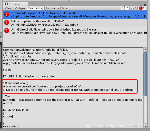 Unity在Gradle打包模式导出Android APK时,报错CommandInvokationFailure: Gradle build failed.