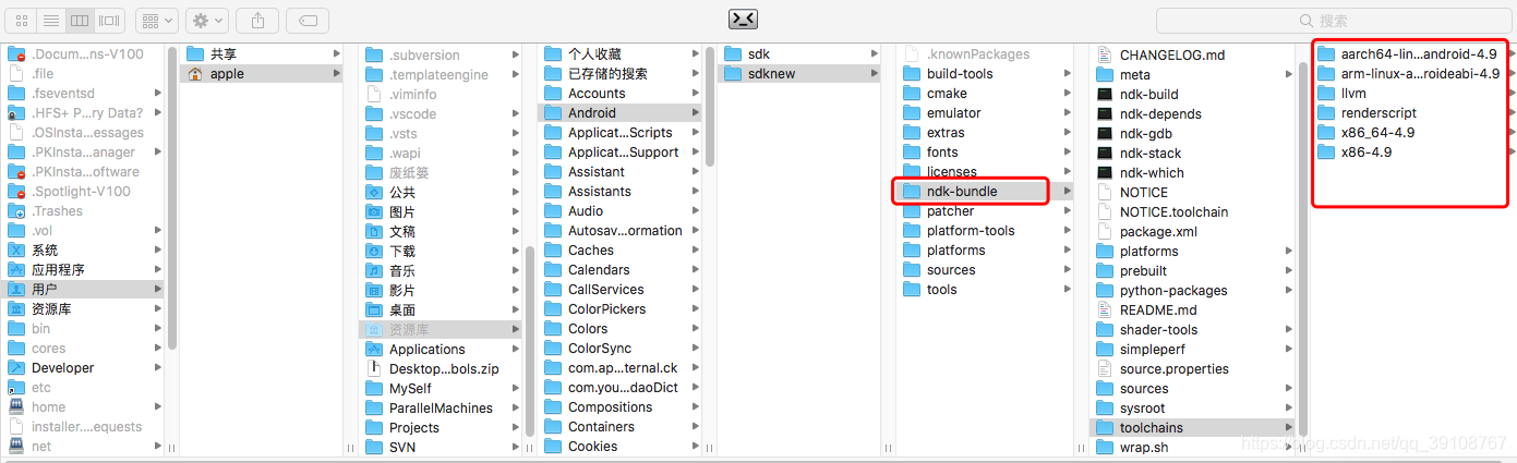找到NDK路径(这个是自己下载的),打开NDK所在文件夹,在"NDK文件夹/toolchains"文件夹下: