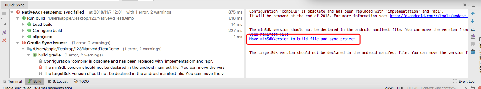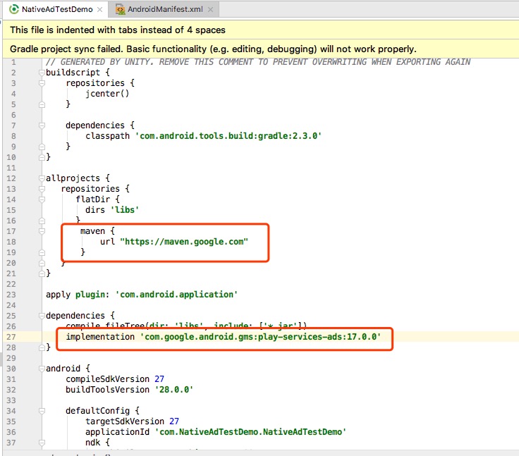 5. 修改AS工程,在Admob官方给出的演示里也有说明,不过只划了重点,没有详细过程,庆幸的是,有官方Demo可以参照