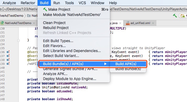 Admob的Native(原生)广告SDK有Unity版本,但只支持图文广告,不支持视频,为了在Native中加入视频,只好来接Android的SDK。实现了Unity项目导出Android Studio工程,AS接入Android SDK后导出Apk过程。