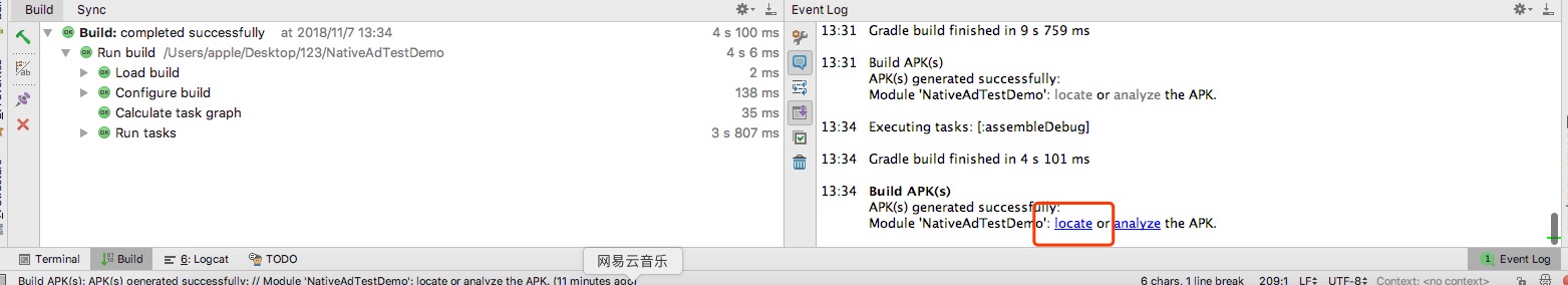 打包完成后,点击打包成功的提示,打开"locate"路径就看到Apk啦,完美~~~