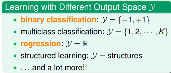 总结,我们可以根据输出空间的类型来对学习算法进行分类