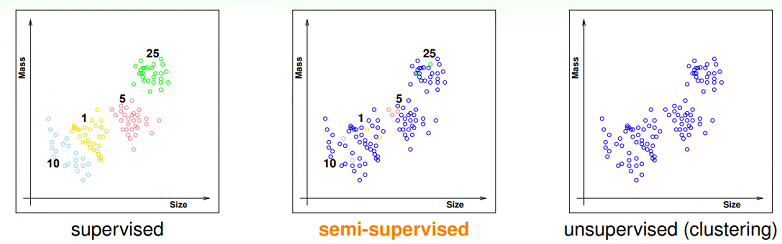 3. 半监督学习 Semi-supervised: some xn comes with corresponding yn (标签获取困难或者费时费力时 采用这种方法)