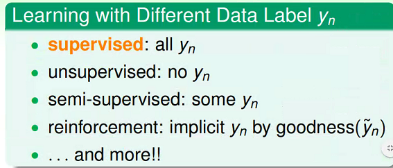 1.监督学习 supervised learning: every xn comes with corresponding yn