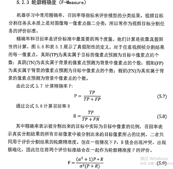 视频目标分割常用Region Similarity J (Jaccard index J defined as the intersection over-union of the estimated segmentation and the groundtruth mask), Contour Accuracy F (