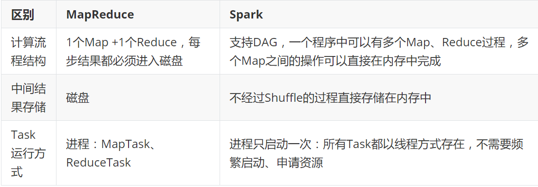 - 如果不经过Shuffle,上一步处理后的结果可以存储在内存中,直接供下一步进行计算