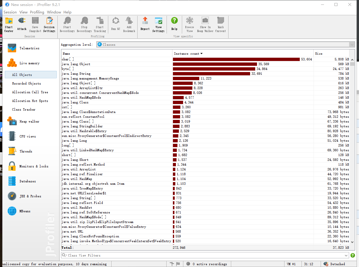 我这里使用的是JProfiler性能分析工具,性能分析过程如下: