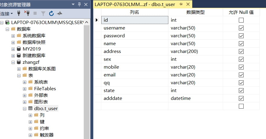 C# <connectionStrings> <add name="zzf" connectionString="server=.\MSSQLSERVER11;uid=sa;pwd=123456;database=zhangzf;"/> </connectionStrings>- 用户的添加