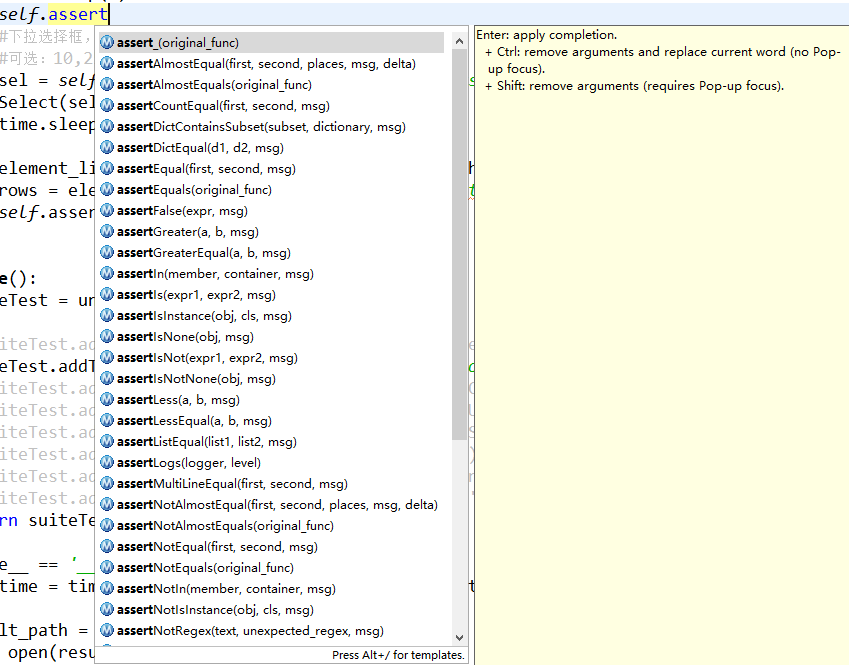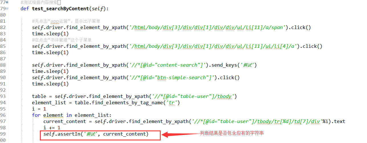(2)断言结果是否包含某个内容:assertIn(member, container)