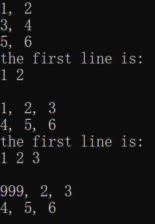 #include <iostream> #include "matrix.hpp" void test() { using namespace std; double x[] = { 1, 2, 3, 4, 5, 6 }; Matrix m1(3, 2); m1.set(x); m1.print(); cout << "the first line is: " << endl; cout << m1.at(0, 0) << " " << m1.at(0, 1) << endl; cout << endl; Matrix m2(2, 3); m2.set(x); m2.print(); cout << "the first line is: " << endl; cout << m2.at(0, 0) << " " << m2.at(0, 1) << " " << m2.at(0, 2) << endl; cout << endl; Matrix m3(m2); m3.set(0, 0, 999); m3.print(); } int main() { test(); }