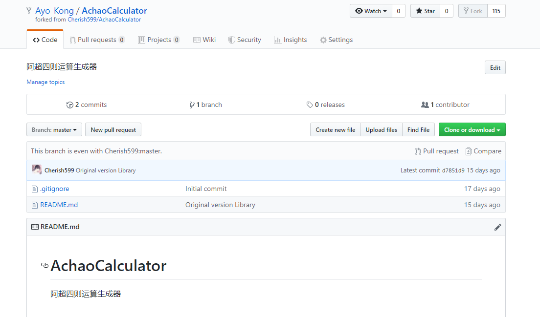 - 进入班级仓库链接点击“fork”将四则运算生成器复制到自己的仓库