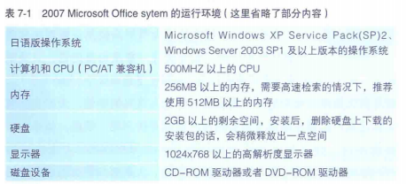 从程序的运行环境这一角度来考量硬件时,CPU的种类是特别重要的参数。为了保证Offce 2007的正常运行,需要具备Pentium等被称为×86°的CPU(微处理器)。
