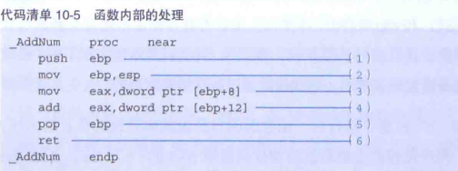 接下来,让我们透过执行 AddNum 函数的源代码部分,来看一下参数的接收、返回值的返回等机制(代码清单 10-5)。