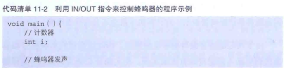 在 AT 兼容机中,蜂鸣器的默认端口号是 61H(末尾的 H,表示的是十六进制数(Hexadecimal)的意思)。用IN 指令通过该端口号输人数据,并将数据的低2位设定为 ON,然后再通过该端口号用 OUT 指令输出数据,这时蜂鸣器就会响起来。采用同样的操作方法,将数据的低 2位设定为 OFF 并输出后,蜂鸣器就停止了。