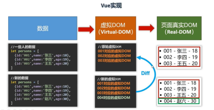 3.使用虚拟DOM+优秀的Diff算法,尽量复用DOM节点。