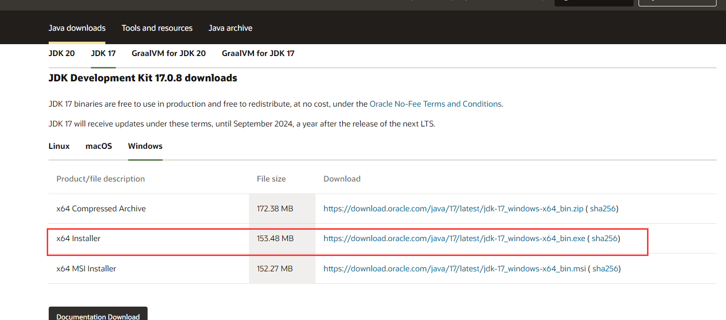 我是装的java17.0.8 X64 Installer,不是javer所以不懂区别。