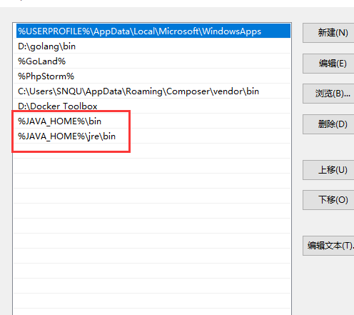 在用户变量 path里添加 %JAVA_HOME%\bin 和 %JAVA_HOME%\jre\bin