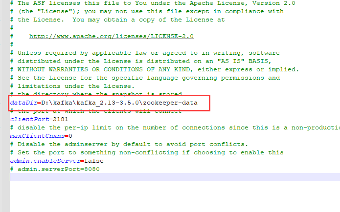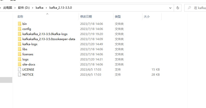 下载后直接解压到安装目录即可,我的安装目录D:\kafka\kafka_2.13-3.5.0