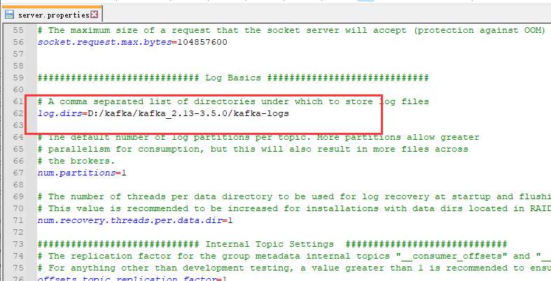 现在进入到config目录打开server.properties配置log.dir
