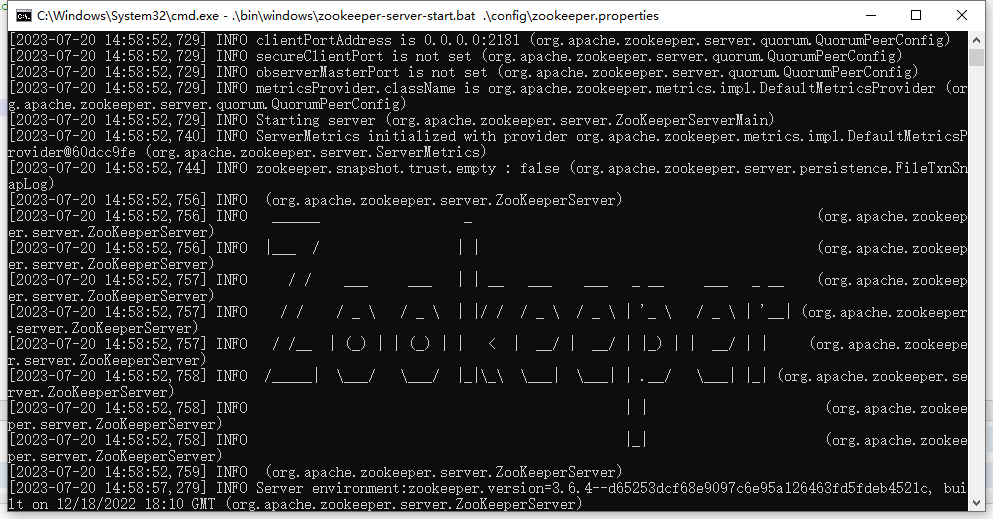 .\bin\windows\zookeeper-server-start.bat .\config\zookeeper.properties