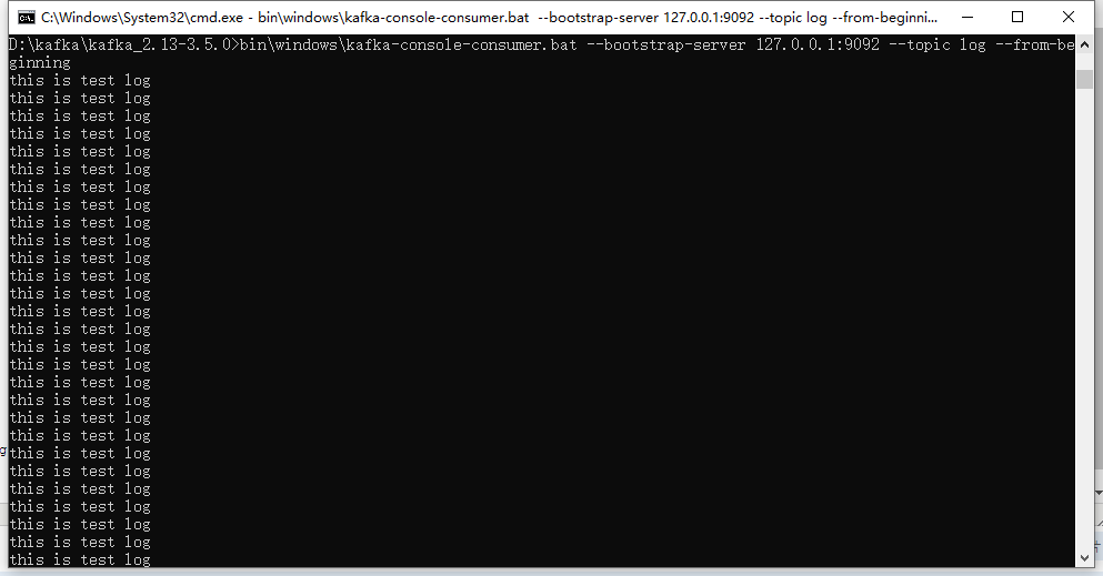 \kafka-console-consumer.bat --bootstrap-server 127.0.0.1:9092 --topic log --from-beginning
