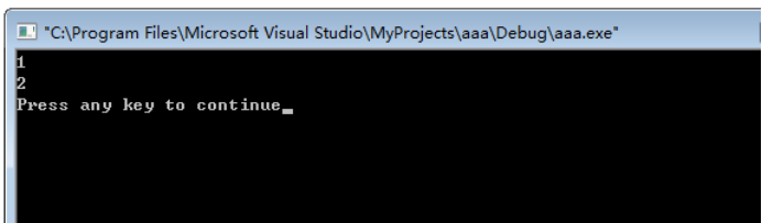 #include<stdio.h> main() { int a=1; int b=2; printf("%d\n%d\n",a,b); }