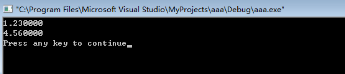#include<stdio.h> main() { float a=1.23; double b=4.56; printf("%f\n%f\n",a,b); }