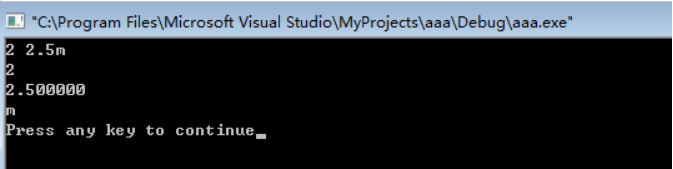 - 编写程序,使用scanf()函数接收整型,实型,字符型的变量,并分行依次输出