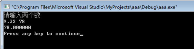 #include<stdio.h> main() { float a,b; printf("请输入两个数\n"); scanf("%f%f",&a,&b); if(a>b) printf("%f\n",a); else printf("%f\n",b); }
