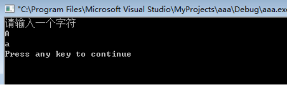 #include<stdio.h> main() { char a; printf("请输入一个字符\n"); scanf("%c",&a); if(a>=97&&a<=122) printf("%c\n",a-32); else printf("%C\n",a+32); }