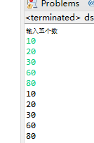 package das; import java.util.Scanner; public class dsa { public static void main(String[] args) { Scanner input=new Scanner(System.in); int a[]=new int[5]; System.out.println("输入五个数"); for (int i = 0; i < a.length; i++) { a[i]=input.nextInt(); } for (int i = 0; i < a.length; i++) { System.out.println(a[i]); } } }