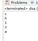 package das; import java.util.Scanner; public class dsa { public static void main(String[] args) { Scanner input=new Scanner(System.in); char a[]=new char[] {'c','h','i','n','a'}; for (int i = 0; i < a.length; i++) { System.out.println(a[i]); } } }