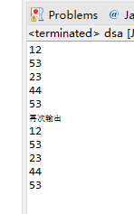 package das; import java.util.Scanner; public class dsa { public static void main(String[] args) { Scanner input=new Scanner(System.in); int a[]=new int[] {12,53,23,44,53}; for (int i = 0; i < a.length; i++) { System.out.println(a[i]); } System.out.println("再次输出"); for (int i : a) { System.out.println(a); } for (int i = 4; i>-1; i--) { System.out.println(a[i]); } } }