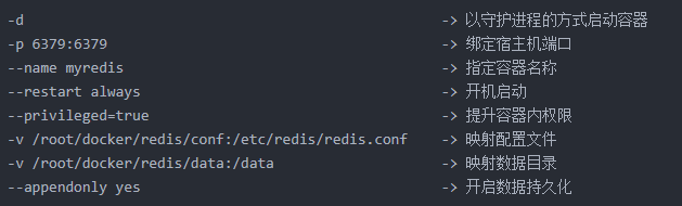 docker run -d -p 6379:6379 -v e:\Redis\conf\redis.conf:/etc/redis/redis.conf -v e:\redis\data:/data --name redis redis:latest redis-server /etc/redis/redis.conf --appendonly yes