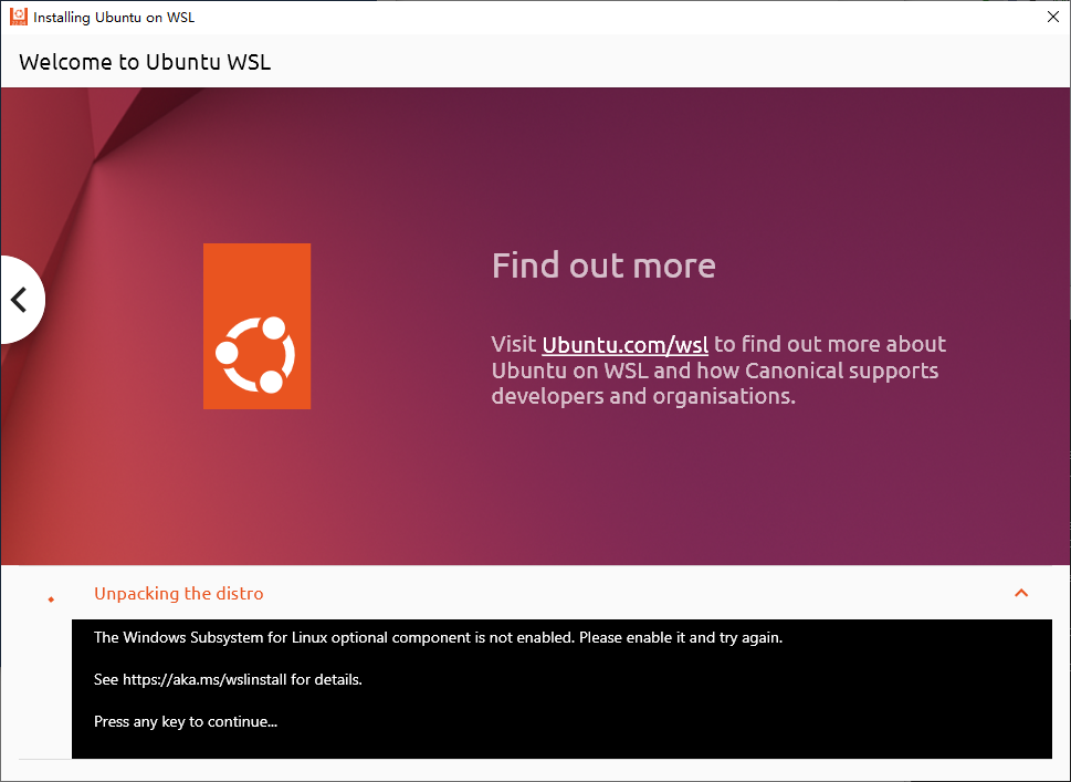 这里记载一下,用 WSL 安装后,碰到这个提示解决不了: