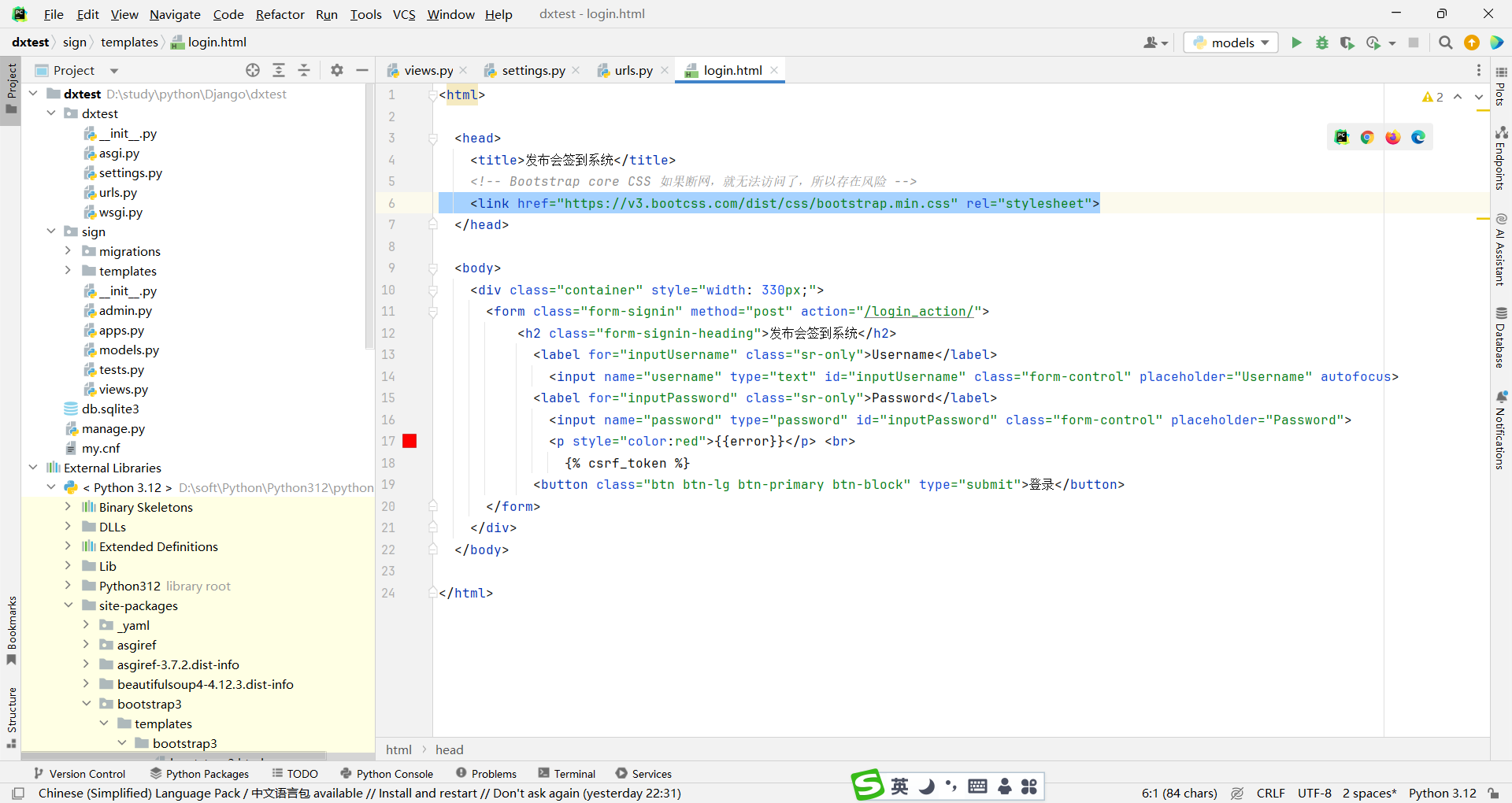 2.3、html页面,配置 {% load bootstrap3 %} {% bootstrap_css %}