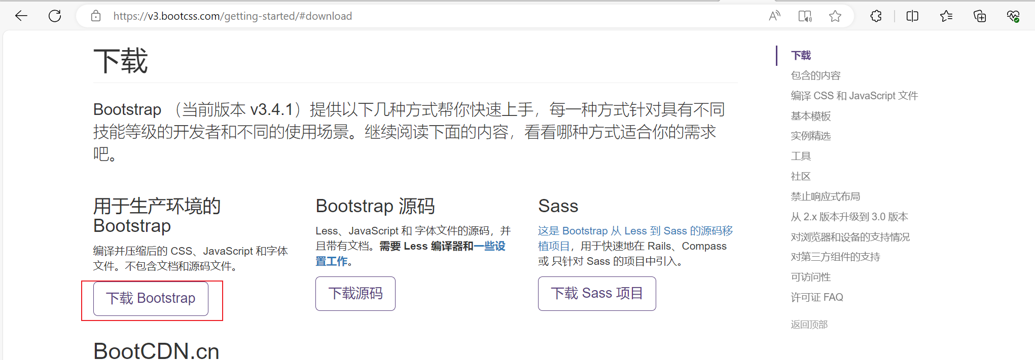官网 Bootstrap中文网 (bootcss.com),当前bootstrap有三个版本,分别是3、4、5。此处以3为例
