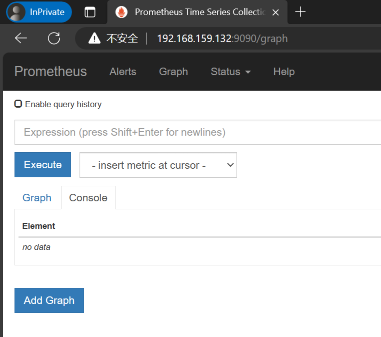 2、访问http://192.168.159.132:9090,成功则表示prometheus连接成功