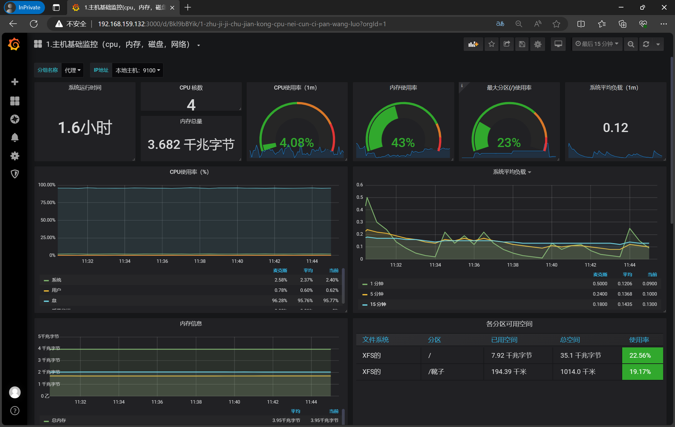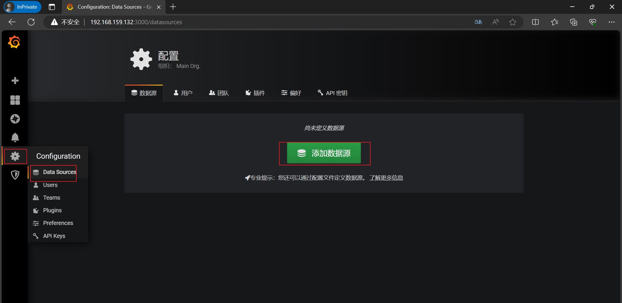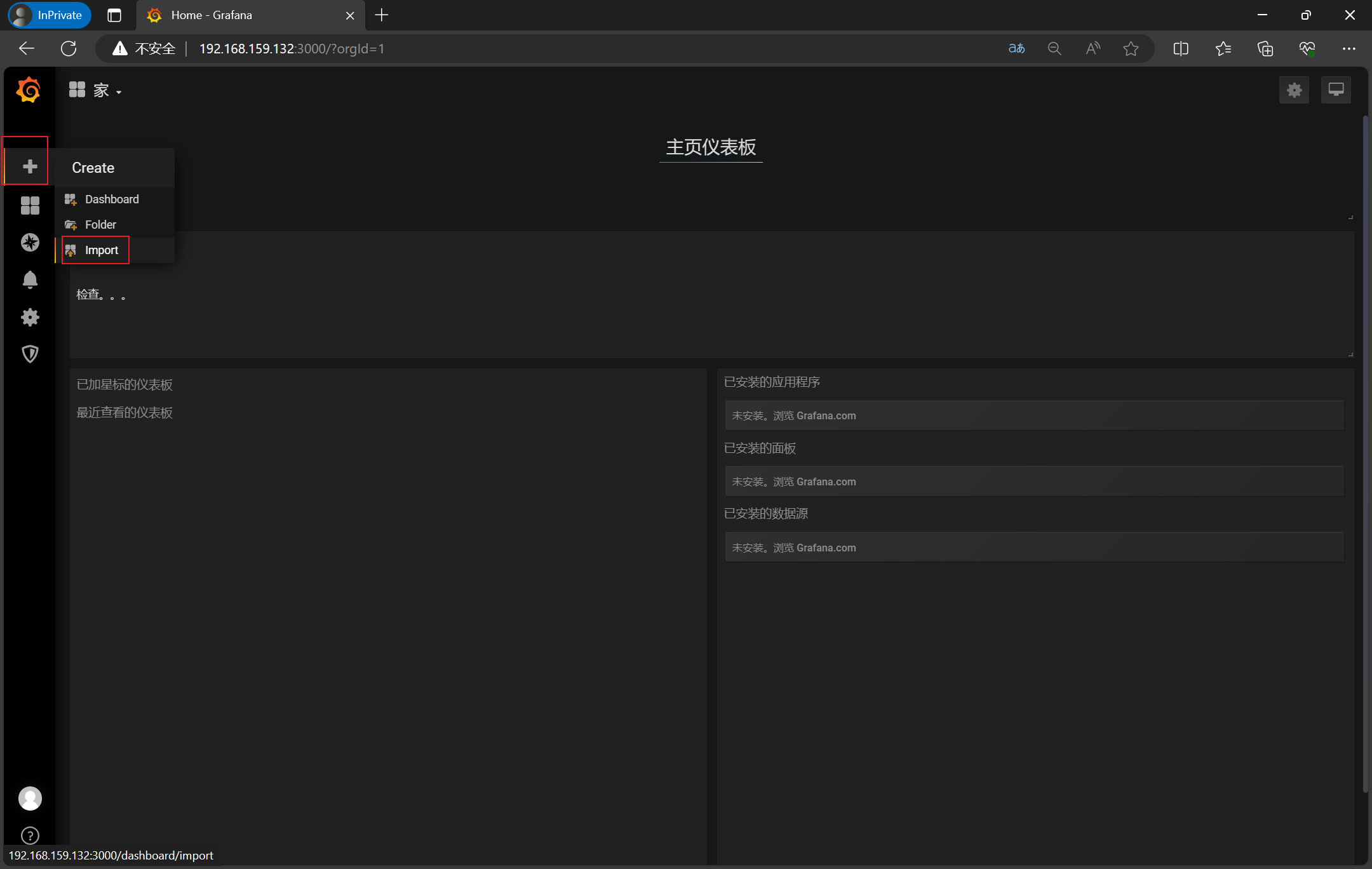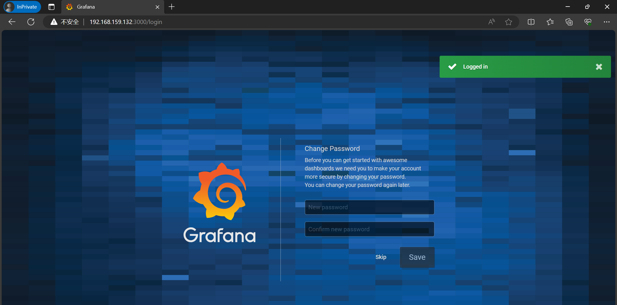 3、访问http://192.168.159.132:3000/login,录入admin/admin