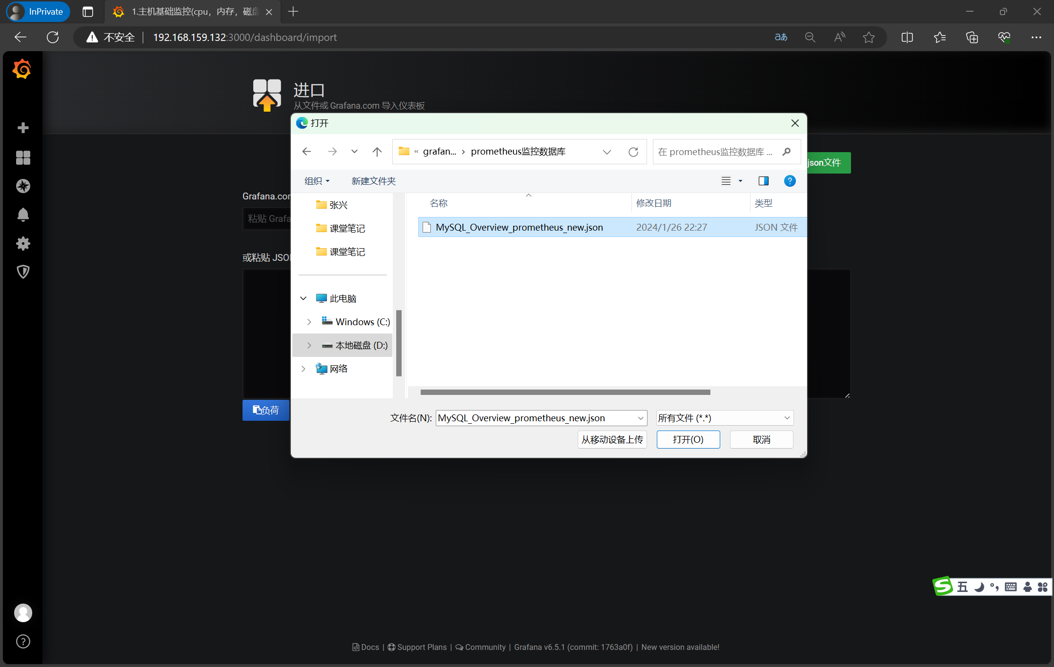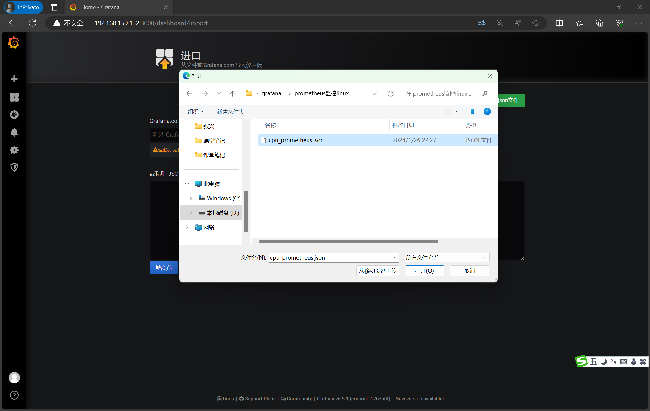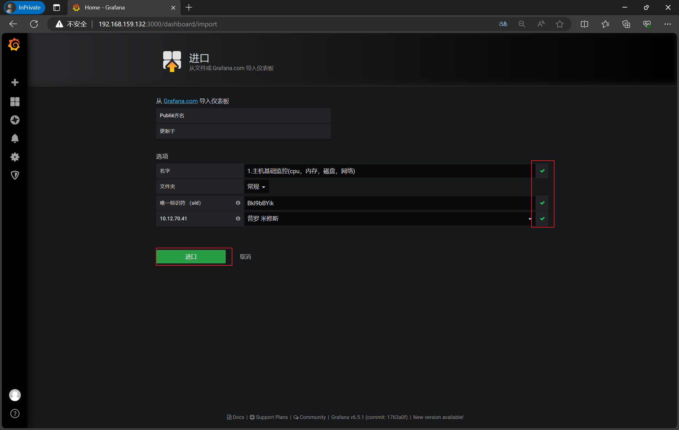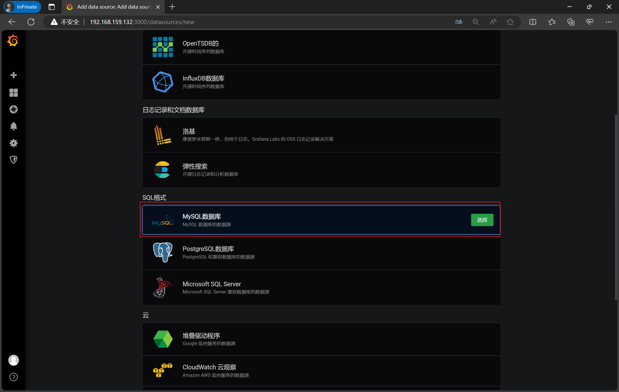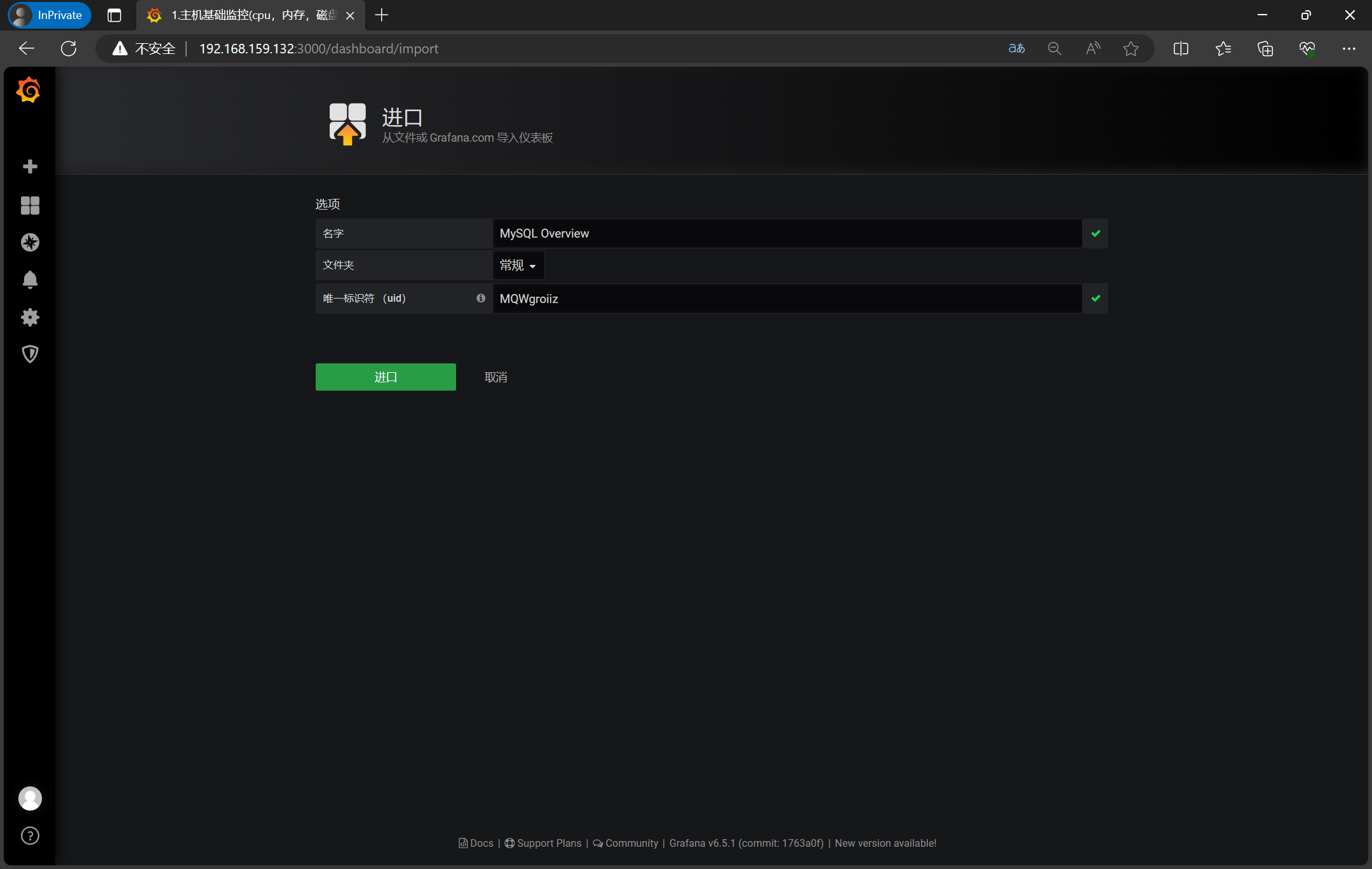 3、访问http://192.168.159.132:3000/login,录入admin/admin