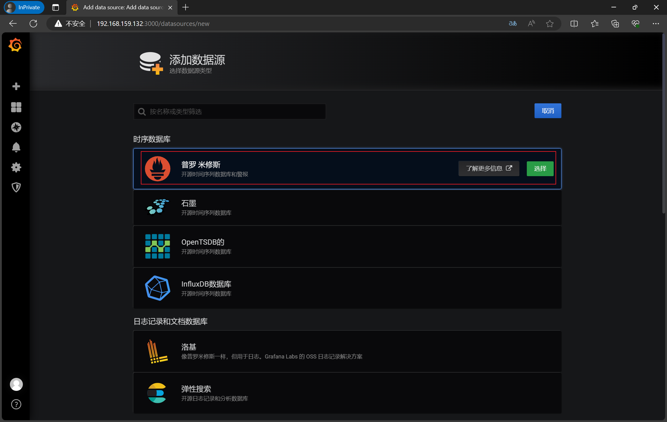 4、点击skip,下一步,添加prometheus