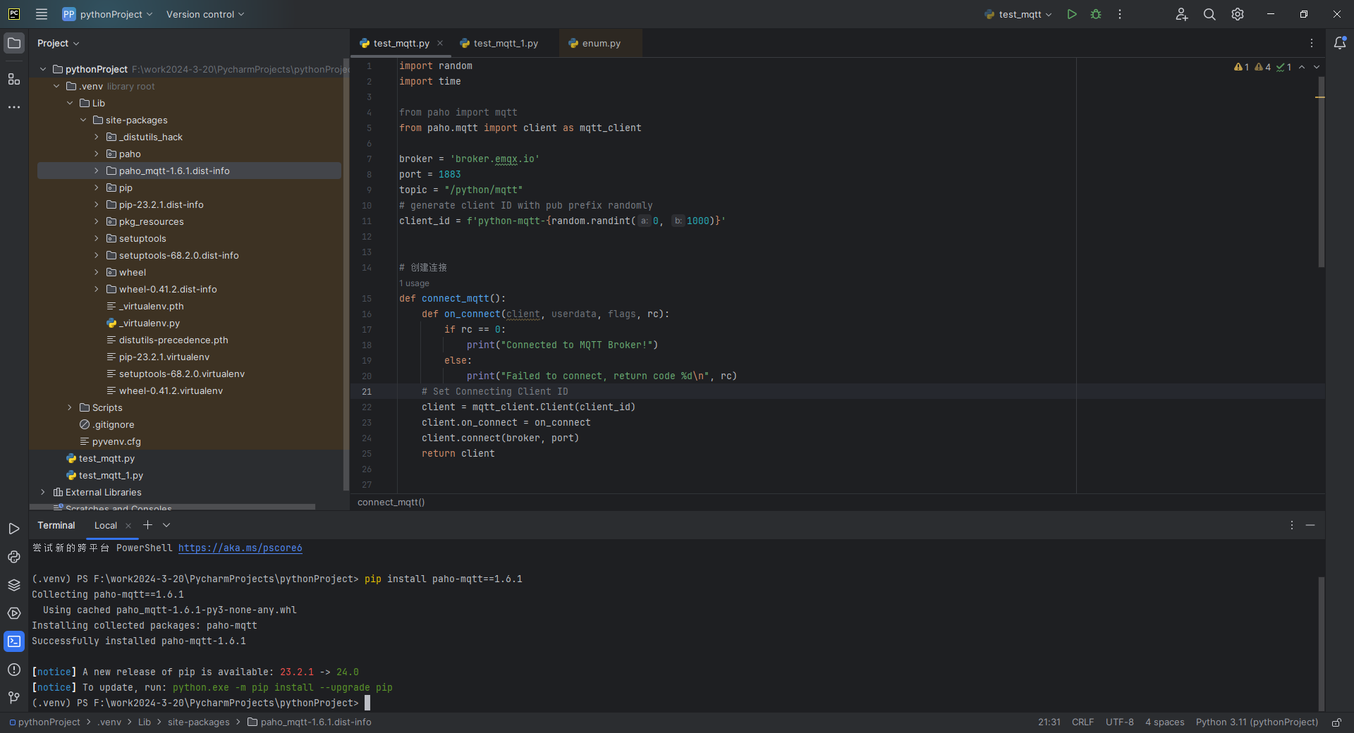 pycharm中怎么使用不同版本的包,如(paho-mqtt)