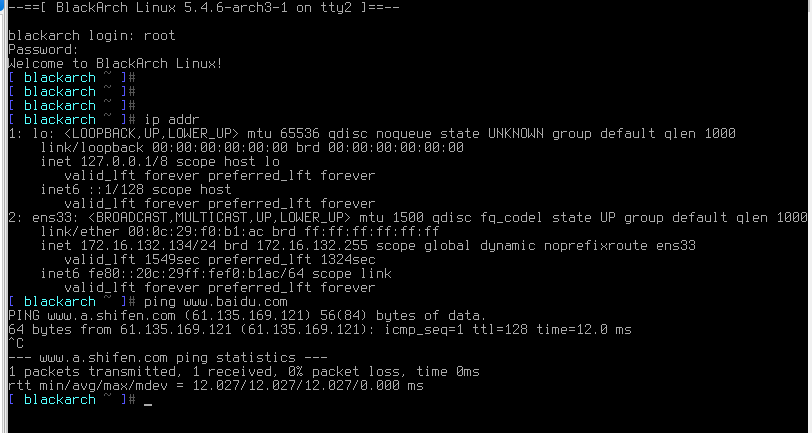 (3)切换到tty模式下,输入账号密码,确认可以上网。