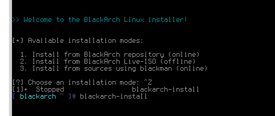 (4) 通过执行blackarch-install执行安装脚本 ,我选择第二种(网上教程是第一个)请君自行决定。