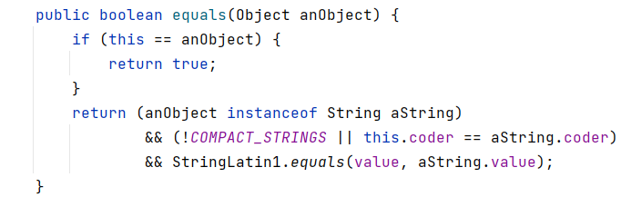 public boolean equals(Object obj){ if(obj == this){ return true; } if(obj instanceof User){ User u = (User)obj; return this.age == u.age && this.name == this.name.equals(u.name); } return false; }