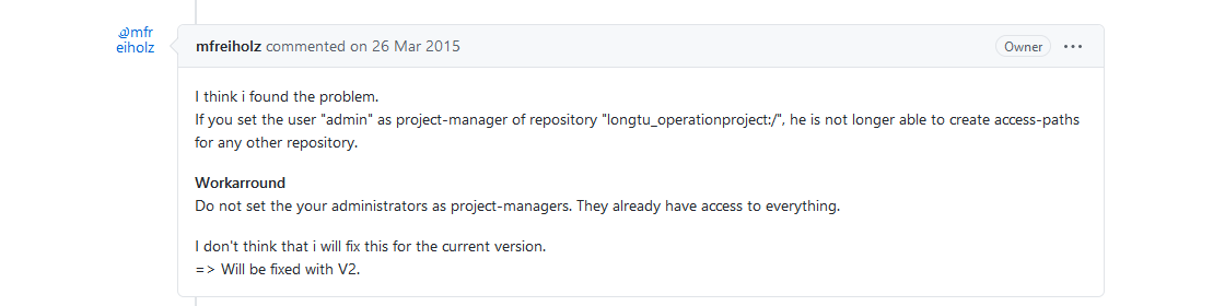 "If you set the user "admin" as project-manager of repository "longtu_operationproject:/", he is not longer able to create access-paths for any other repository."