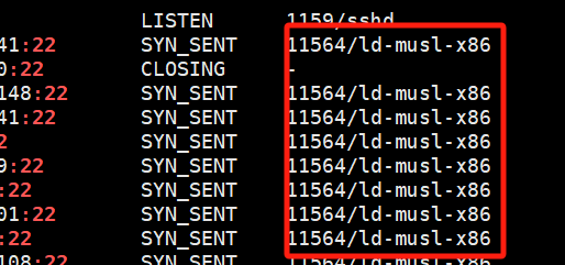 从上面可以看到,访问22端口的是11564/ld-musl-x86进程。查看进程相关信息ps -ef |grep 11564