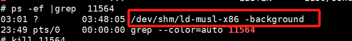 杀死进程kill -9 11564 ,删除可执行文件 rm -r /dev/shm/ld-musl-x86