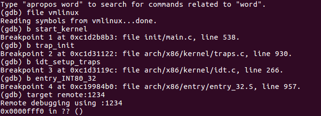 验证过程:分别在以上函数处打断点,启动内核